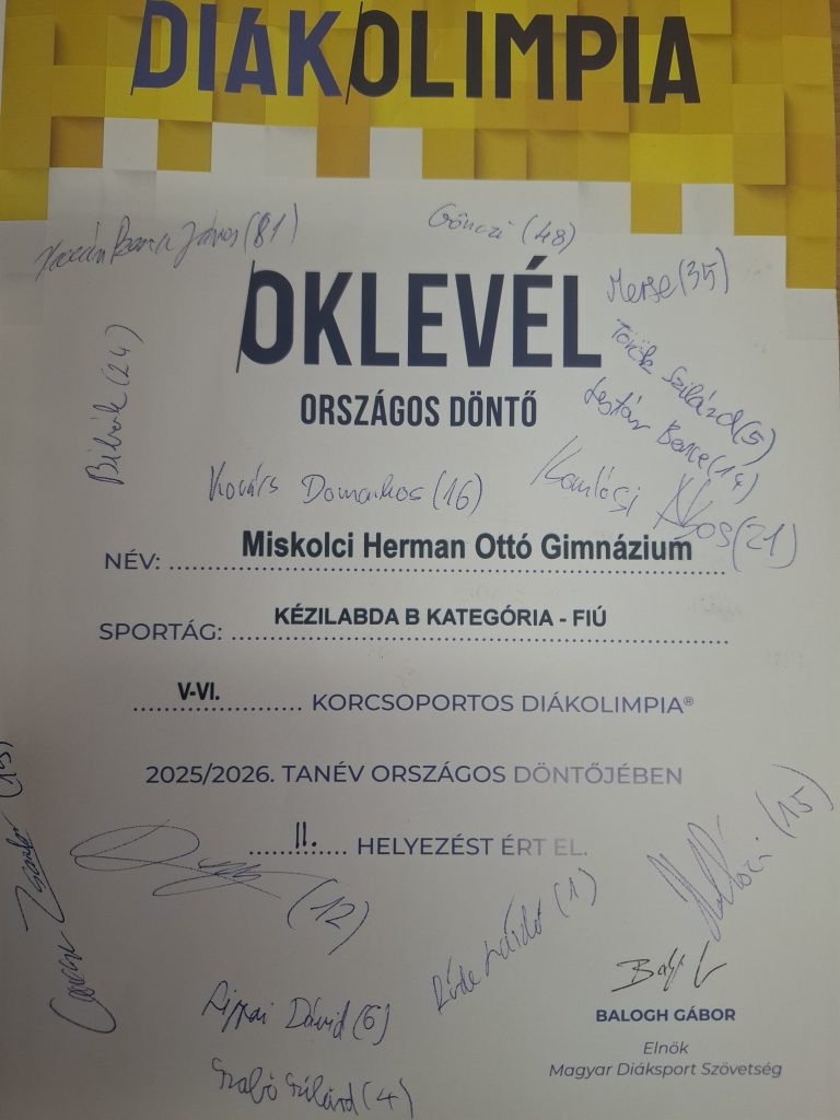 KÉZILABDA DIÁKOLIMPIA ORSZÁGOS 2.HELYEZETT A HERMAN