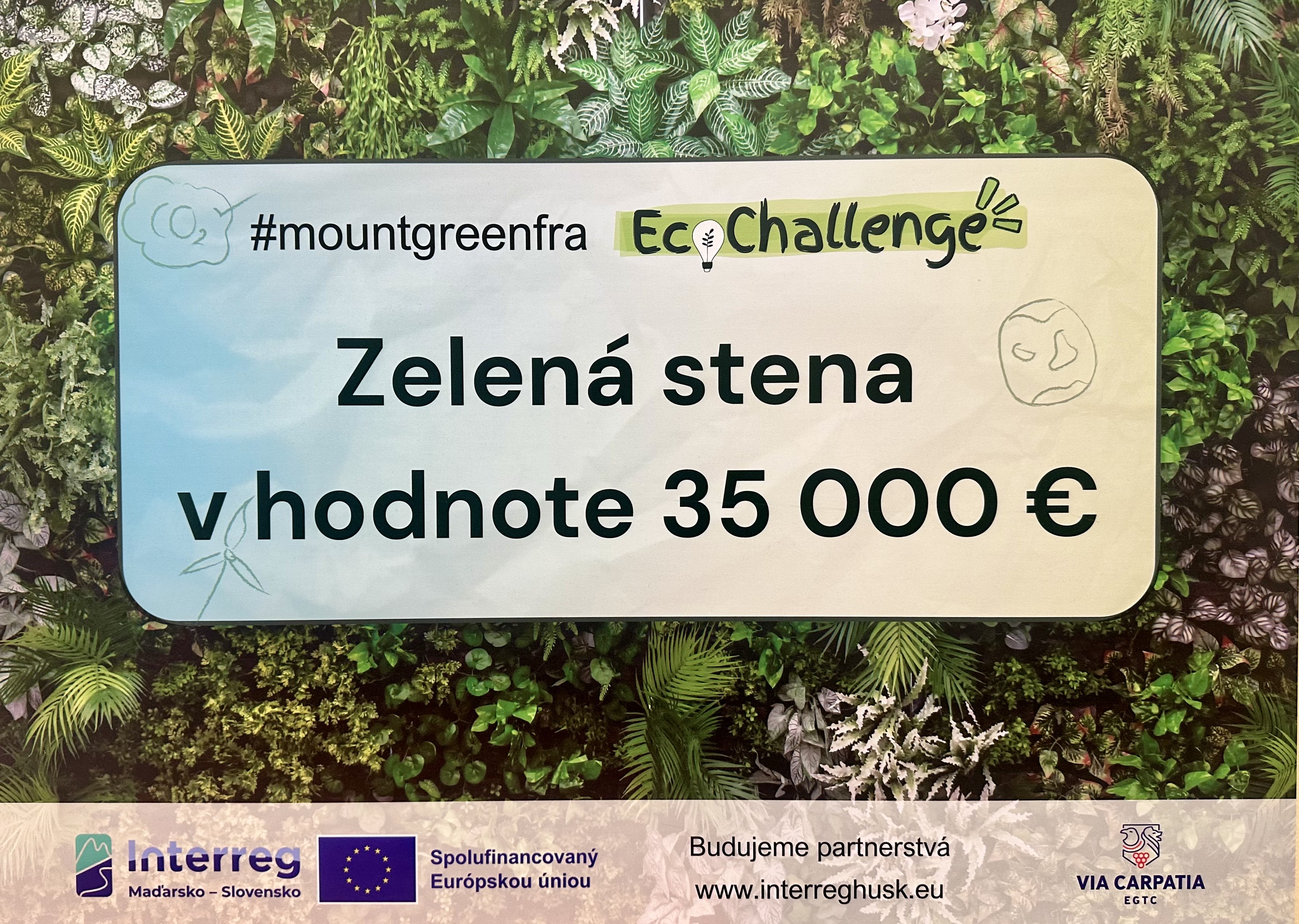 A verseny során csapatunk kiemelkedő teljesítményt nyújtott, és megnyerte a Via Carpatia EGTC EcoChallenge versenyt. Ennek eredményeként iskolánk elnyerte a fődíjat, egy 35 000 Euró értékű zöldfal kiépítését. A zöldfal egy élő növényekkel borított felület, amely beltéren vagy kültéren is elhelyezhető. Jelentősen javítja a levegő minőségét, csökkenti a por- és zajszennyezést, hűti a környezetet, valamint egészségesebb és kellemesebb légkört teremt az iskola közössége számára.