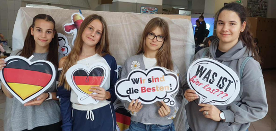Lelkes diákok és tanárok közösen készítettek el a német interaktív programokat: szabadulószobákat magyar és német nyelven, izgalmas kvízeket, fotósarkot, valamint 5 perces gyors nyelvórákat. Emellett a látogatóknak lehetőségük volt próba nyelvvizsgát is tenni.