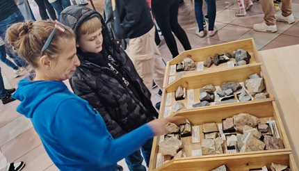 Az aulában interaktív fizikai, biológiai és földtani játékos programokból választhattak vendégeink az este folyamán. Készítettünk vulkáni „popcornt”, ismerkedhettek a Bükk- hegység ásványaival és kőzeteivel, az emberi szervezet belső szerveivel, érdekes fizikai eszközökkel és kísérletekkel.