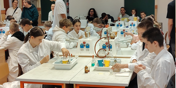 A mikroszkópi világ mindig elvarázsolja a gyerekeket, de a felnőtteket is. Megfigyelhettek medveállatkákat, fonalférgeket, harangállatkákat, papucsállatkákat, növényi bőrszövetet és gázcserenyílásokat is.