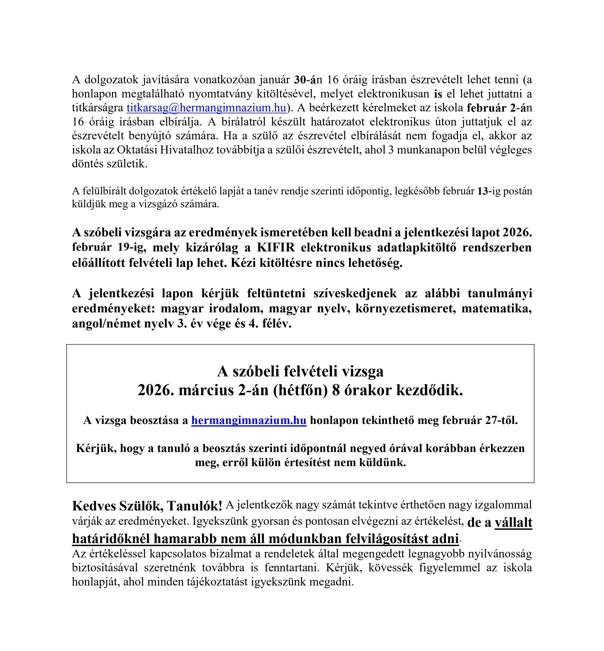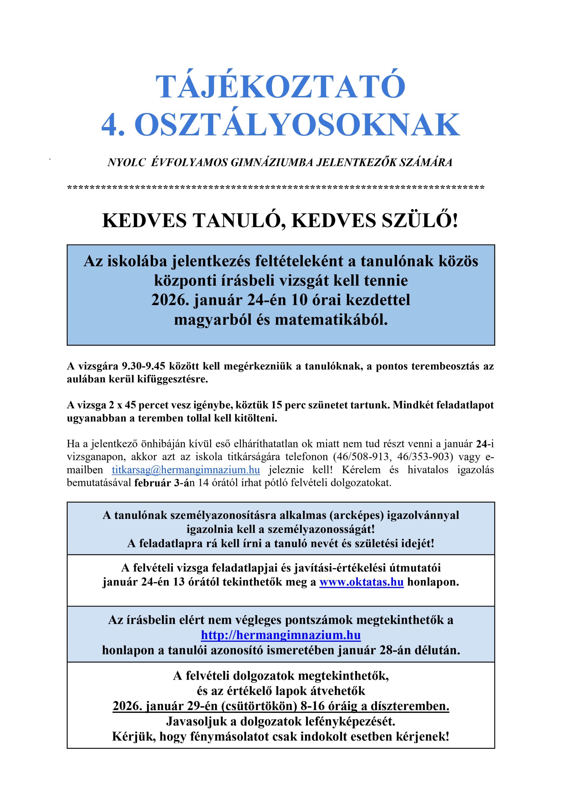 Tisztelt szülők! A sítáborról 2026. január 13-án, kedden 17 órakor szülői értekezletet tartunk a díszteremben.